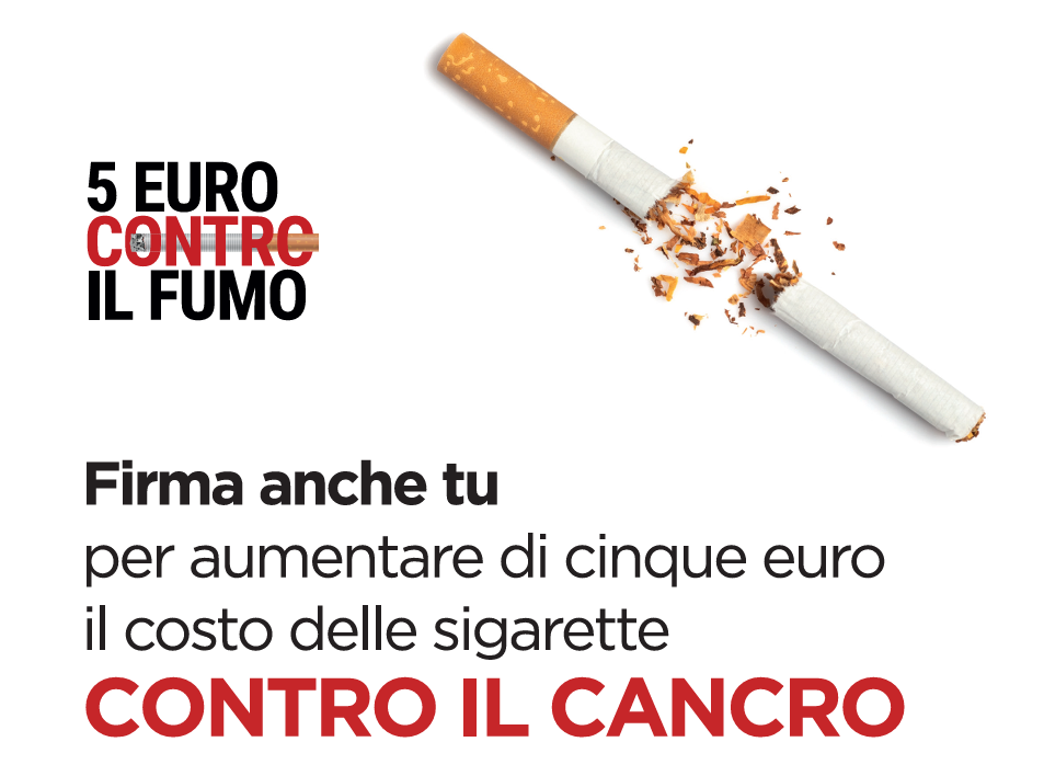 AIOCC aderisce alla campagna “5 euro contro il fumo” e sostiene la raccolta firme per una proposta di legge d’iniziativa popolare che chiede di aumentare di 5 euro il prezzo di tutte le sigarette e dei prodotti da fumo, compresi quelli di nuova generazione, per contrastare il tabagismo e tutelare la salute pubblica.
